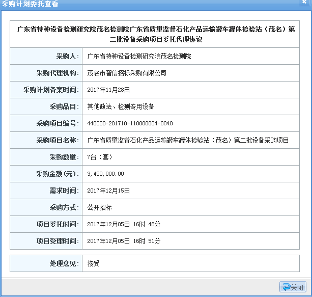 廣東省質(zhì)量監(jiān)督石化產(chǎn)品運(yùn)輸罐車(chē)罐體檢驗(yàn)站(茂名)第二批設(shè)備采購(gòu)項(xiàng)目 |