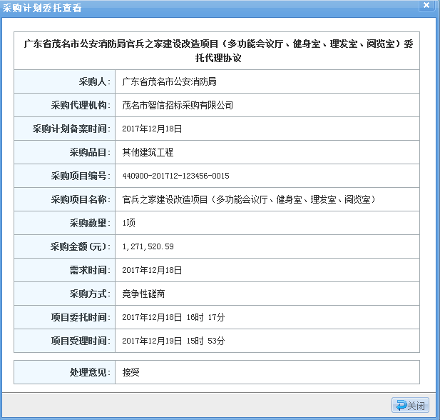 茂名市智信招標采購有限公司 受 廣東省茂名市公安消防局 的委托,擬對 官兵之家建設改造項目(多功能會議廳、健身室、理發室、閱覽室) 進行競爭性磋商,歡迎符合資格條件的供應商參加。本項目將優先確定符合相應資格條件的自主創新產品、節能產品、環保產品供應商參加談判。