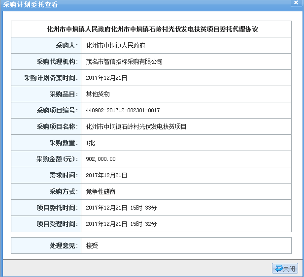 茂名市智信招標采購有限公司 受 化州市中垌鎮人民政府 的委托,擬對 化州市中垌鎮石嶺村光伏發電扶貧項目 進行競爭性磋商,歡迎符合資格條件的供應商參加。本項目將優先確定符合相應資格條件的自主創新產品、節能產品、環保產品供應商參加談判。
